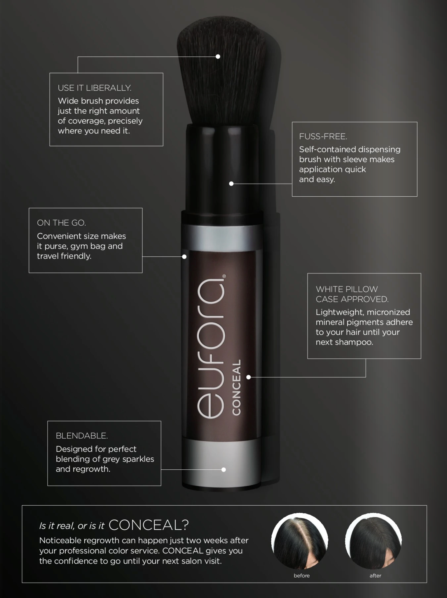 Eufora is a professional haircare line with a focus on “cleaner” products, which includes on-the-go root cover that is a lightweight hair powder with a kabuki-style retractable brush that temporarily cover greys and regrowth that also acts to absorb oil and add texture at your roots while delivering nutrients to promote hair and scalp health!! Products use micronized mineral pigments that adhere to your hair until your next shampoo with no mess, no dry time, and no stickiness